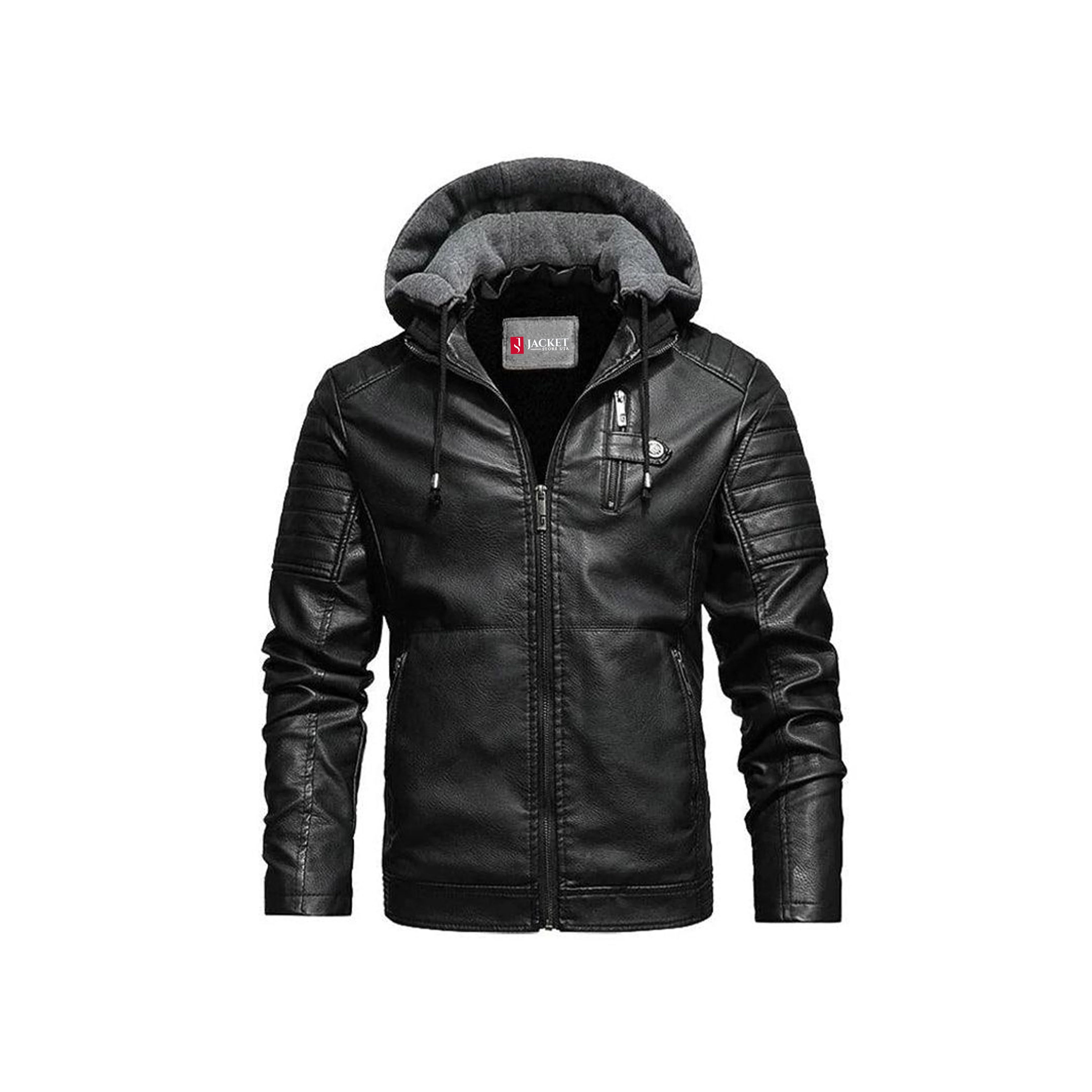 This leather jacket is for men features an asymmetrical design and a hood, made from soft original leather for a fashionable and practical look. The unique asymmetrical zipper enhances the edgy style, while the durable construction and precise attention to detail ensure long-lasting quality.