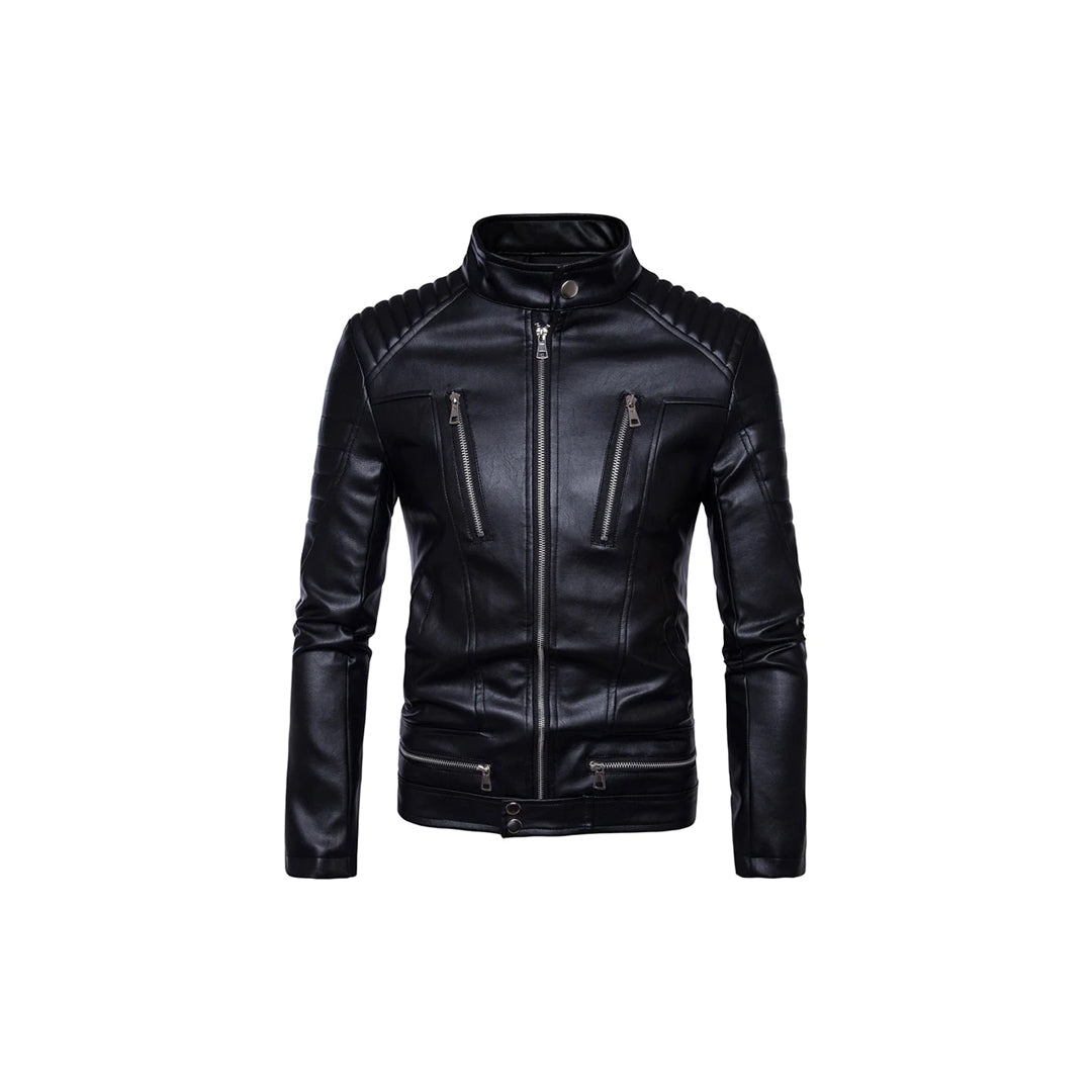 The Classic Stylish Cross Zip Jacket features a stand-up collar with button closure and a distinctive angled zip down the front, creating a unique look. This jacket is designed with three-dimensional shoulder detailing, adding a modern edge to its classic silhouette. Made from high-quality cow leather and batik fabric, the jacket offers both durability and style. The interior is lined with polyester for comfort and breathability.