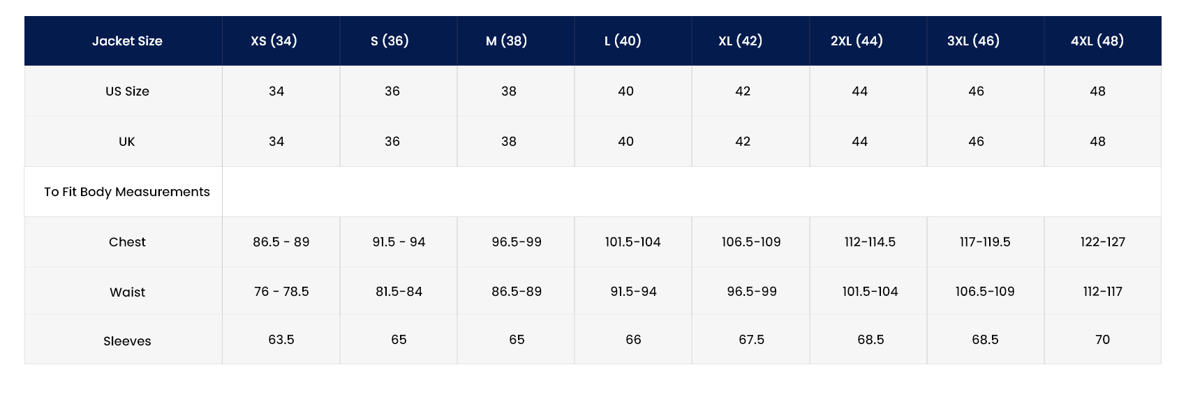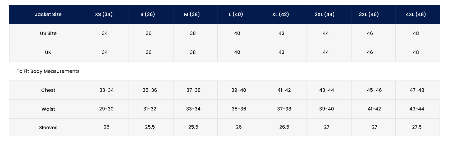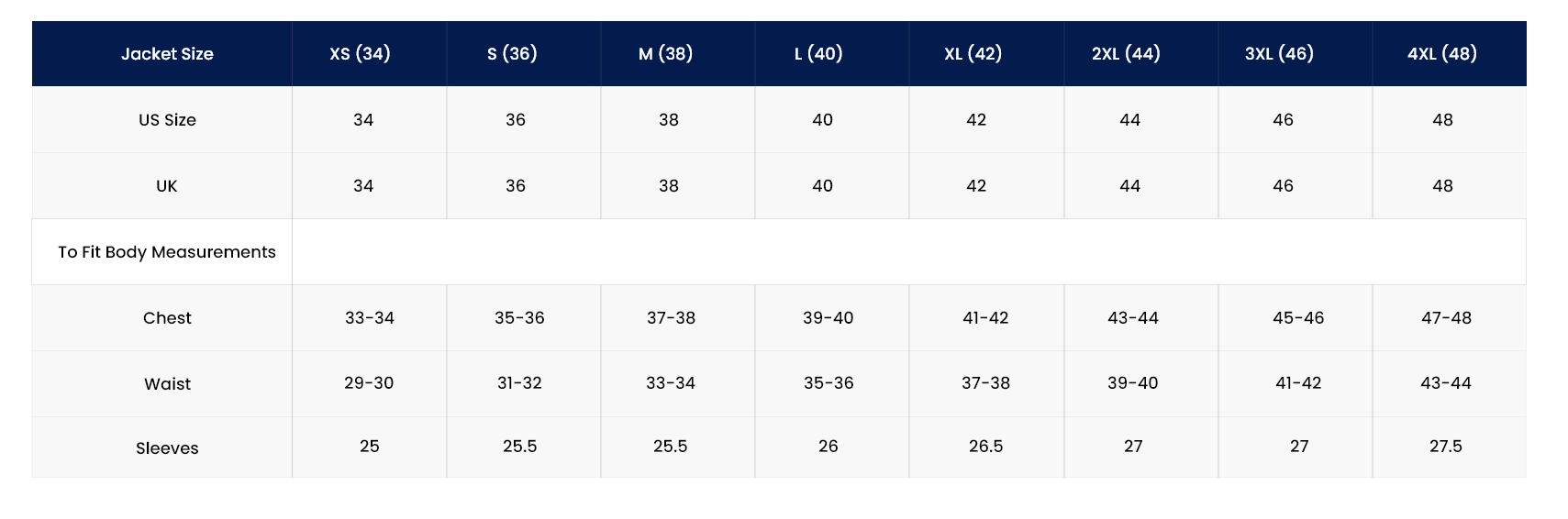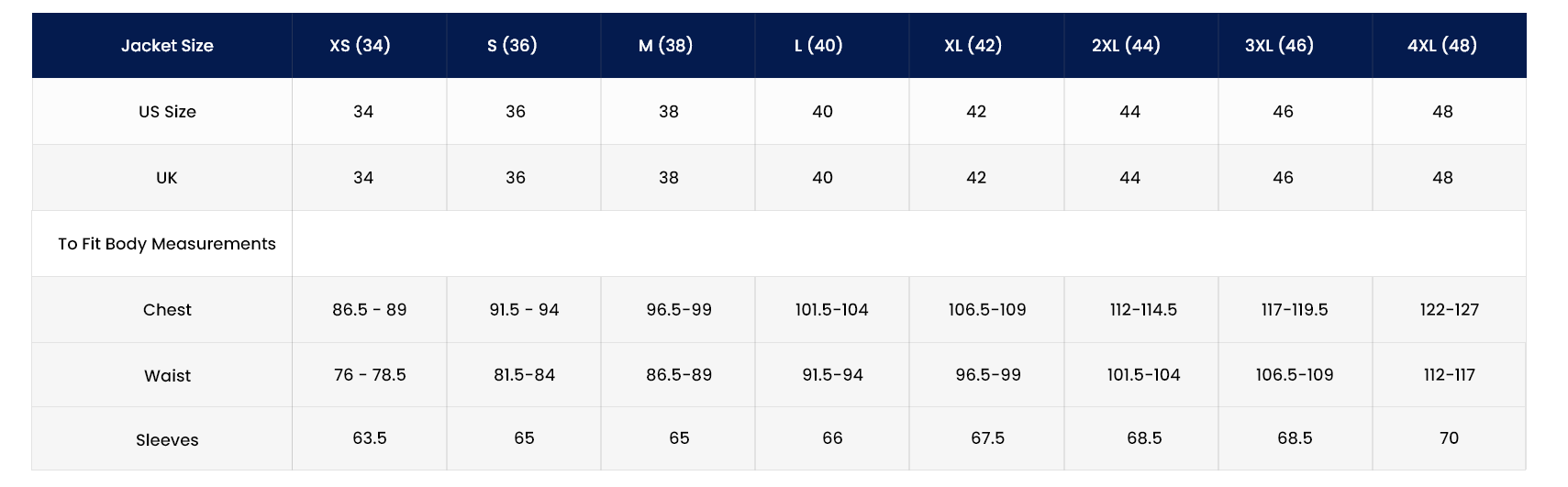Here are all the dimensions needed to get a good, well-fitting coat or jacket. Whether it's a ready-to-wear size or one made especially for you, these guidelines will help you measure your body accurately and select the best-fitting clothing. It's also critical to check the measurement unit on a size chart. Because the imperial measuring system is regarded as the norm, a US jacket size chart will often be in inches. Because the metric system is officially used in Europe and the UK, it is likely that a UK jacket size chart will be in centimeters. Be careful to check which one fits where before making a purchase!