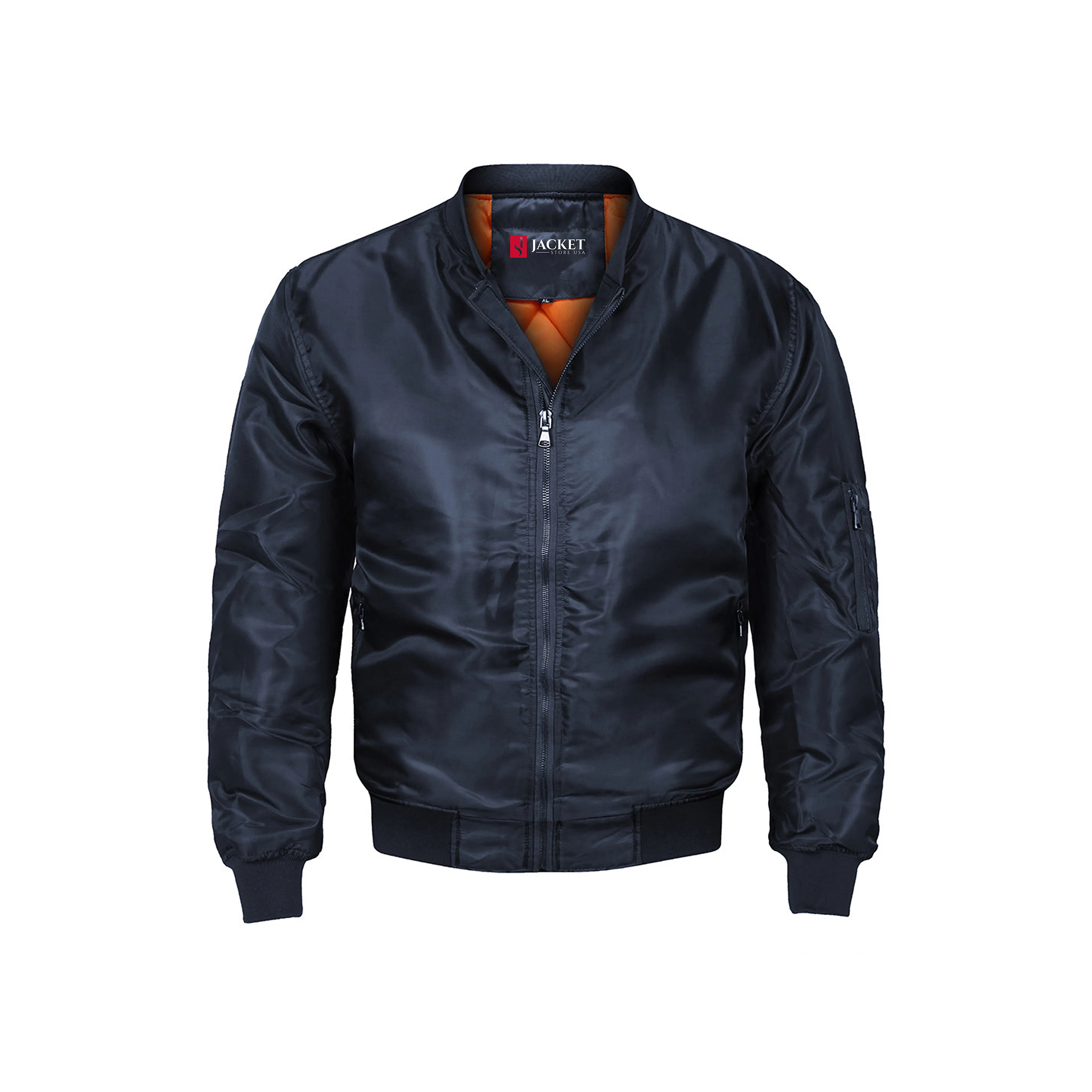 The Men's Midnight Blue Valor Bomber Jacket is crafted from durable polyester, designed to offer both style and functionality. This bomber jacket features a cutting-edge waterproof coating, making it suitable for various weather conditions. The fabric is also scratch-resistant and abrasion-resistant, ensuring it maintains its appearance even with regular wear.