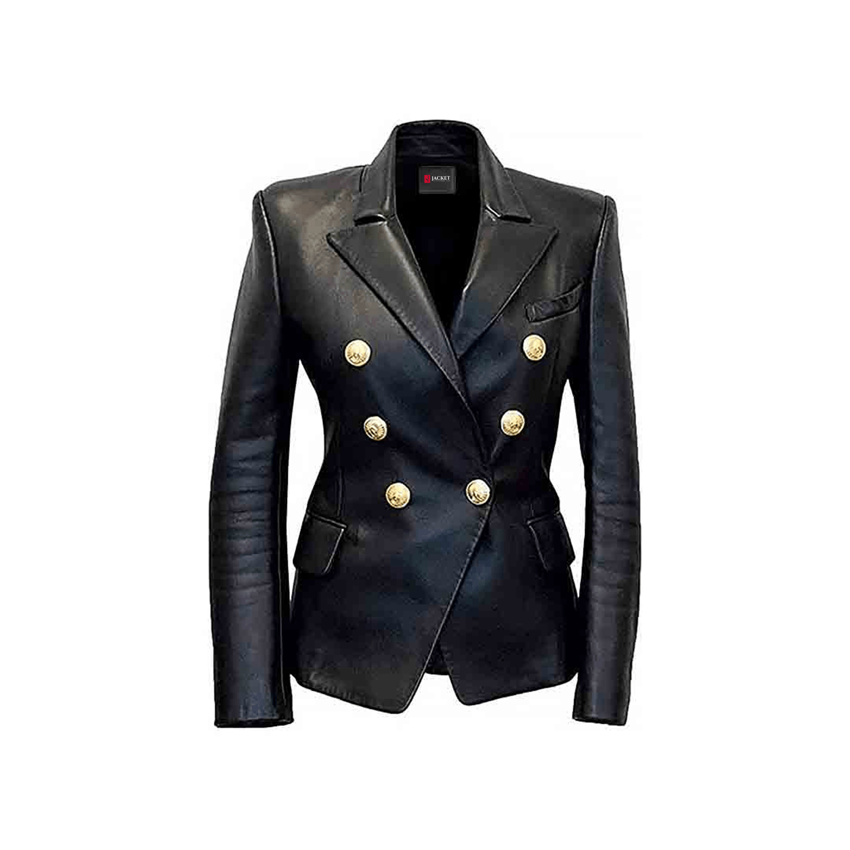 The Women's Double Breasted Blazer Jacket offers a timeless, sophisticated look. Crafted from 100% premium real leather, this jacket features a double-breasted button closure, with two parallel columns of metal buttons for added style and security. The double stitching ensures durability, while the two outside pockets offer both function and flair.